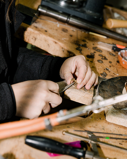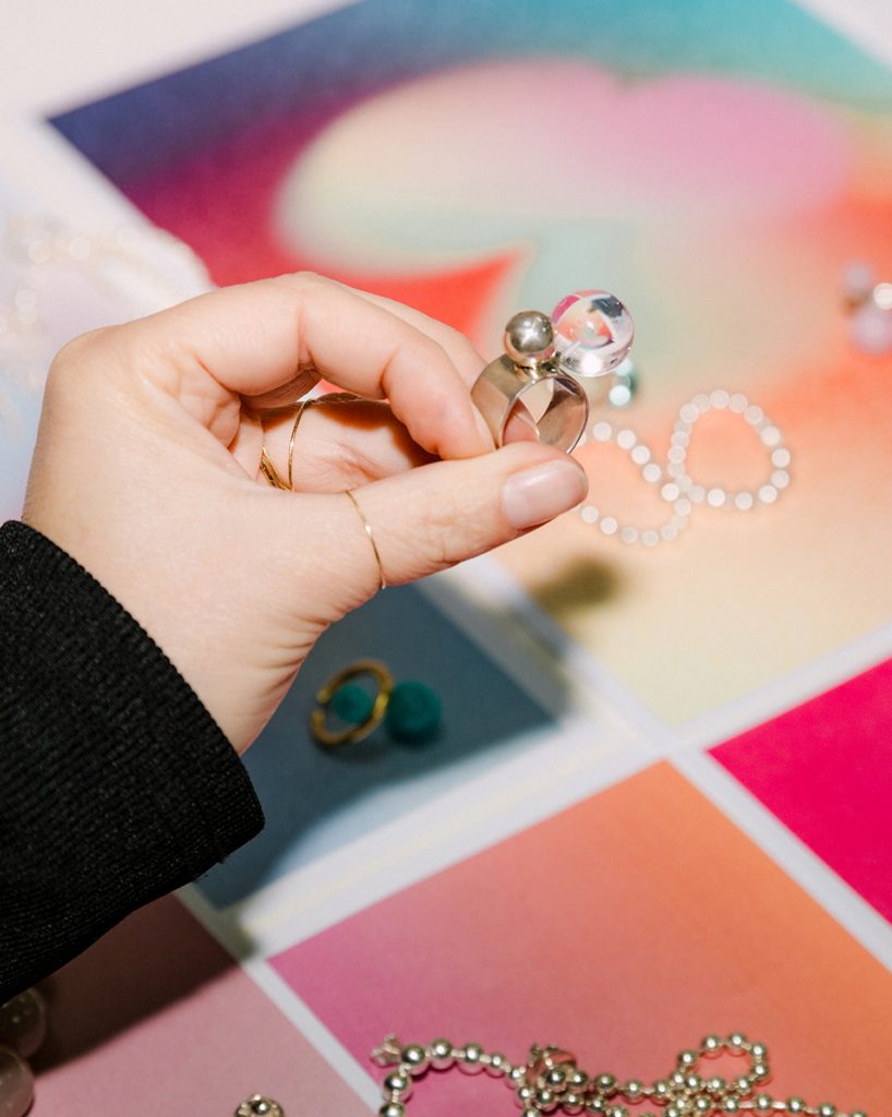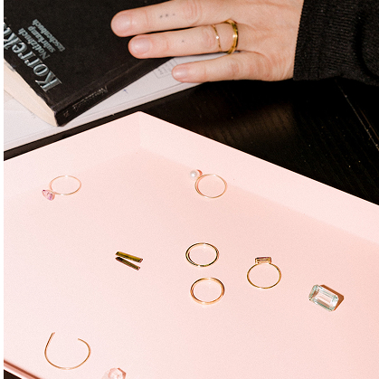Von filigranen Diamantringen bis hin zu auffälligen Ear Cuffs – mit meinem Schmuck versuche ich Geschichten zu erzählen und Welten zu kreieren, die meine Sicht auf die Schönheit des Alltags, Begegnungen mit seinen Träger*innen und dem Jetzt, das uns umgibt zu erfassen.