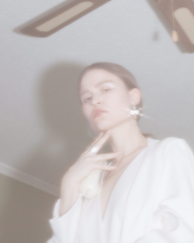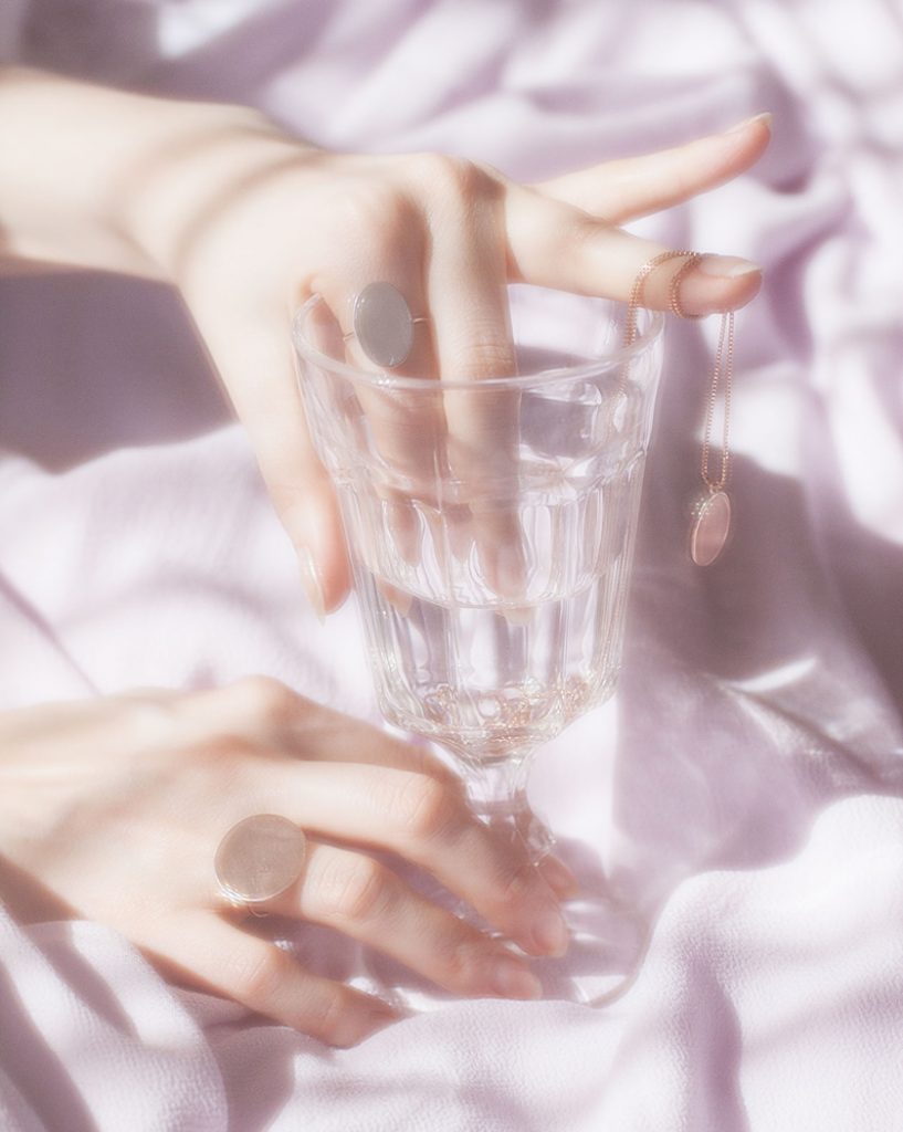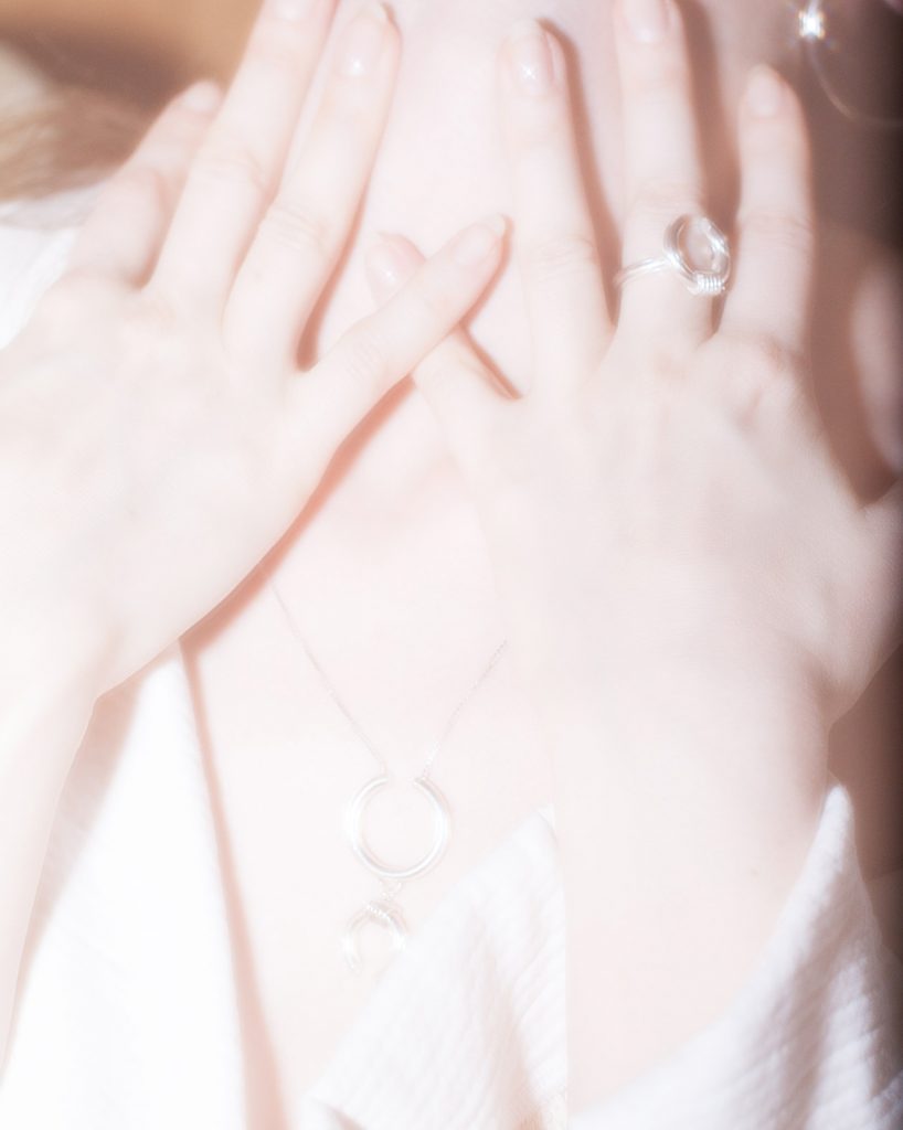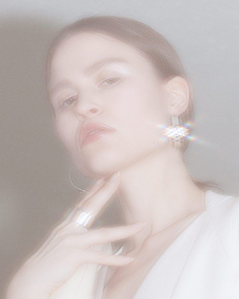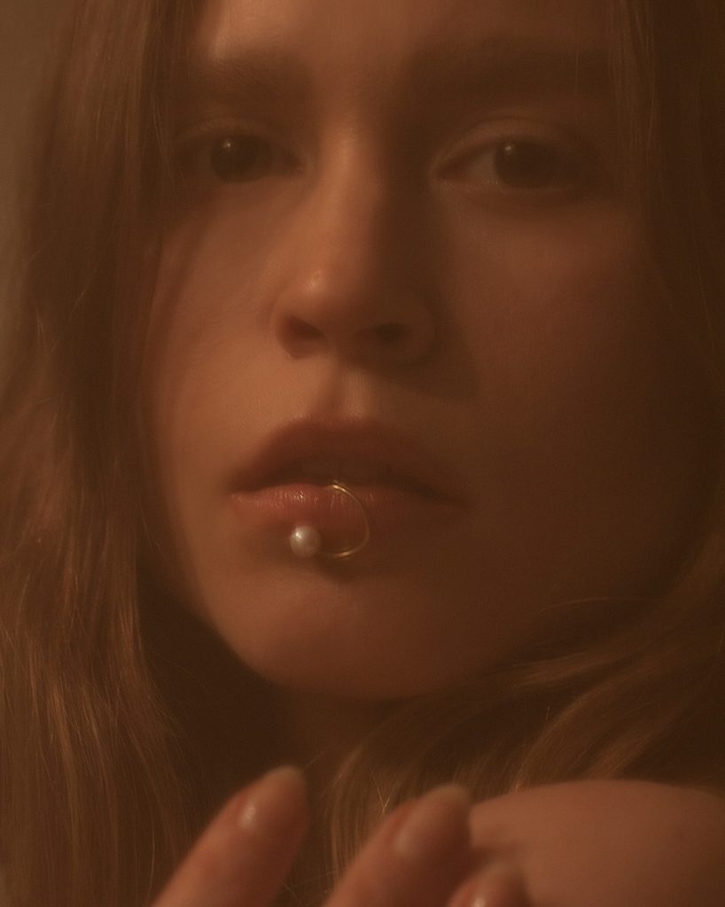 Perlen, geschwungene Oberflächen, Spiegelglanz, feiner Golddraht – diesmal begleitet von fließendem Stoff und Leder. VELVET DELIGHT spielt mit Kontrasten: sinnlich, geheimnisvoll, inspiriert von der Anmutung eines David Lynch Films. Geshootet in einem in die Jahre gekommenen Hotelzimmer, trägt jedes Stück den Hauch von Nostalgie, Glamour und subtiler Verführung.
